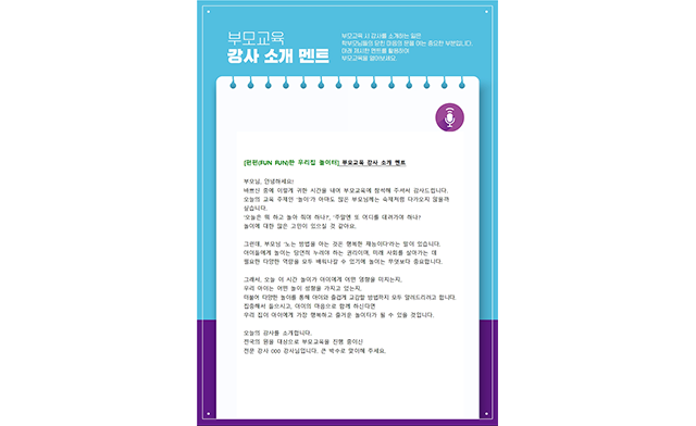 OOO아빠“오늘 강사님과 직접 놀이하면서 경험하니 동심으로 돌아간 것처럼 훨씬 재밌고 쉽게 놀이에 대해 배울 수 있었어요. 오늘 배운 놀이, 아이와도 집에서 즐겁게 해볼게요.
