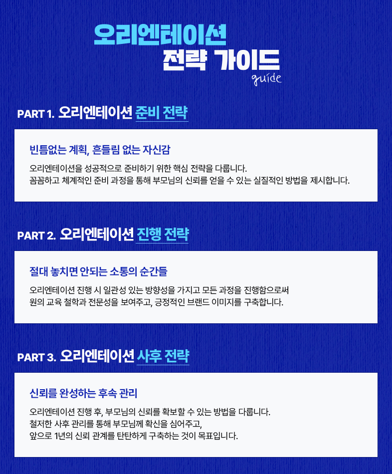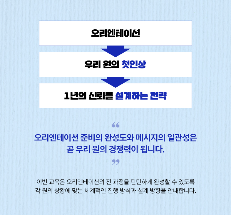 우리 원의 첫 1시간을 설계해 신뢰와 만족도를 높일 수 있도록, 오리엔테이션의 구성·메시지·진행 흐름을 체계적으로 정리한 실용 전략을 제공합니다.