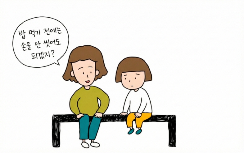 예: "밥 먹기 전에는 손을 안 씻어도 되겠지?"