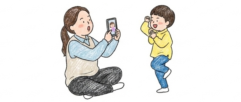 아이가 카드의 그림을 보고 먼저 동작을 흉내 내보도록 이끌어주세요. 아이의 엉뚱하고 귀여운 표현을 칭찬하며 함께 웃어주는 것이 중요합니다.
