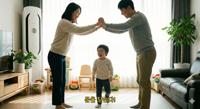 부모님이 만든 따뜻한 문을 통과하며 아이는 세상을 향해 나아가는 용기와 다시 돌아올 수 있는 안전한 품을 동시에 경험하게 됩니다.