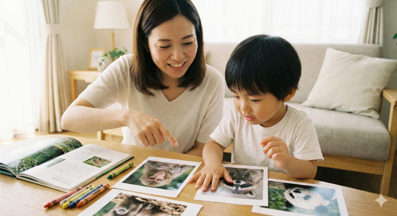 동물의 손과 사람의 손이 '도구를 사용한다'는 공통점이 있다는 것을 자연스럽게 인지하게 도와주면 더욱 좋습니다.