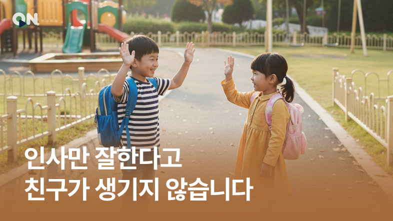 아이가 낯선 환경에서도 당황하지 않고 대화를 시작할 수 있는 인사와 말 걸기 기술과