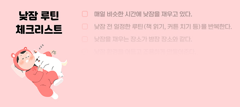 함께 제공하는 [낮잠 루틴 체크리스트] 를 통해 우리 집 수면 환경을 점검하고,