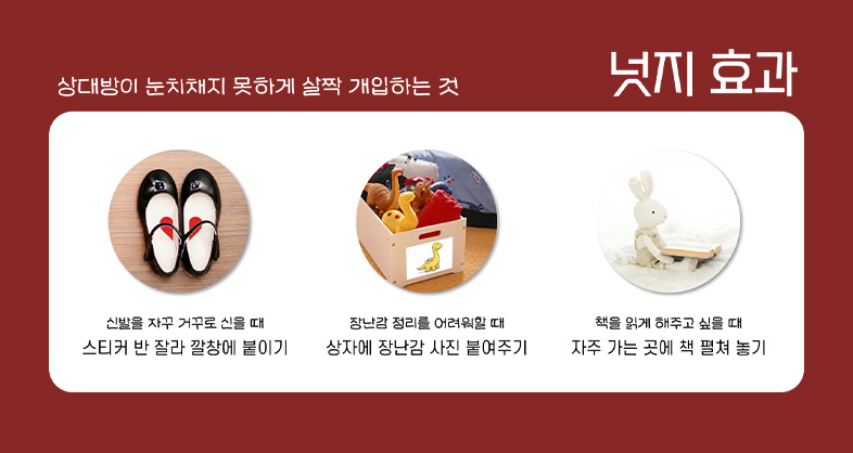 ✔ 넛지(Nudge) 효과 : 아이가 스스로 인지하고 행동하게 돕는 부드러운 개입 기술